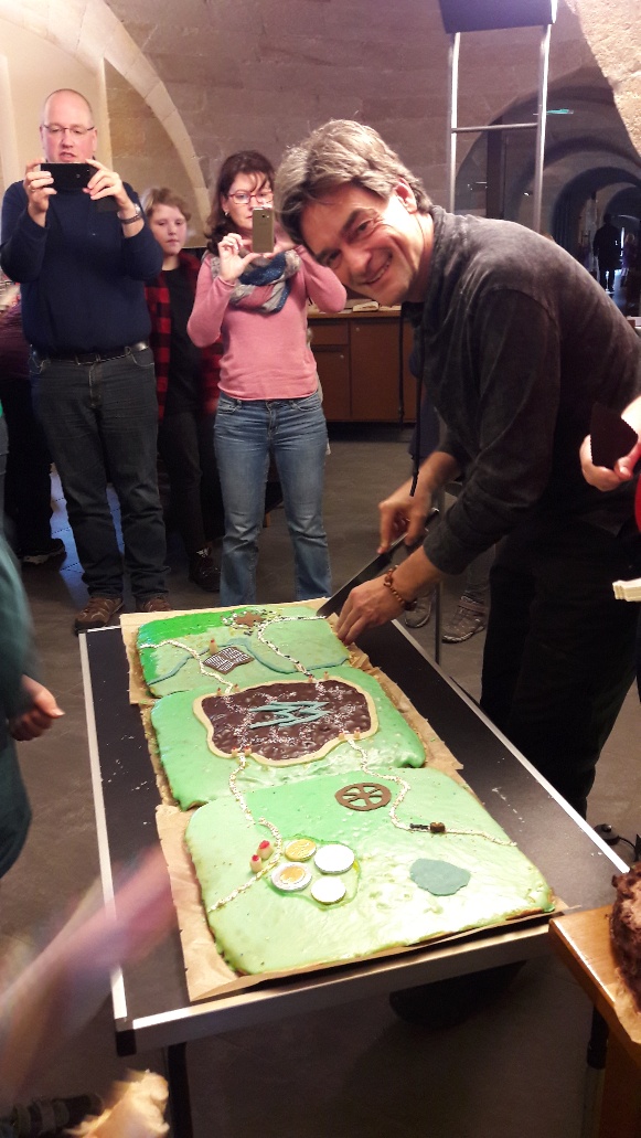 Später dann gehörte es natürlich zu seinen Obligenheiten, den Kuchen (der von Udos Mannen im Vorfeld gebacken wurde) anzuschneiden.
