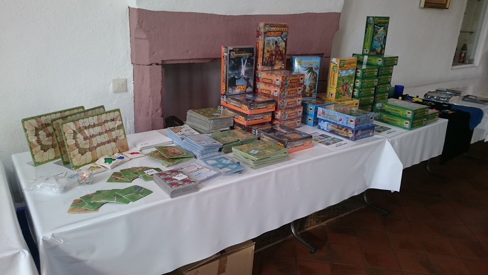 Wie immer, gab es auch wieder einige Artikel käuflich zu erwerben: Benny und Holger testeten das neue Spiel von Klaus-Jürgen Wrede, "Die Baumeister des Colosseum", welches ebenfalls einen sehr guten Eindruck macht. Insgesamt war die Veranstaltung sehr gut besucht. Im Mittelpunkt stand in diesem Jahr natürlich Carcassonne Amazonas.