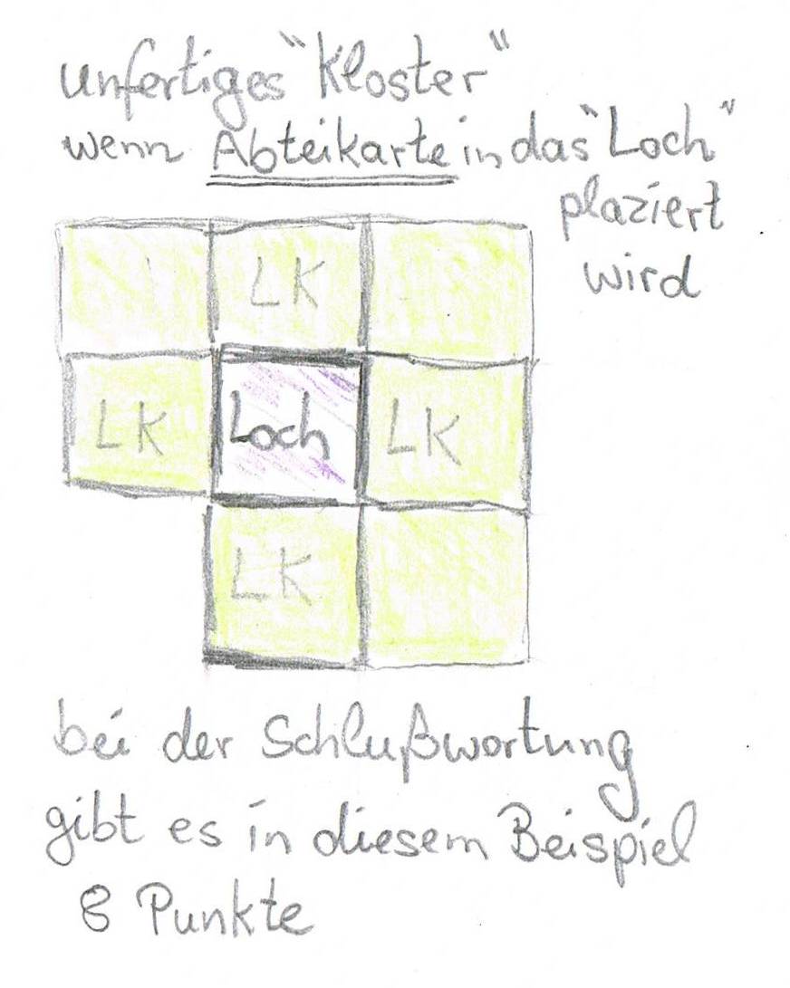 Am Ende des Spiels darf ja noch jeder Spieler reihum seine Abtei Karte, wenn möglich, legen.