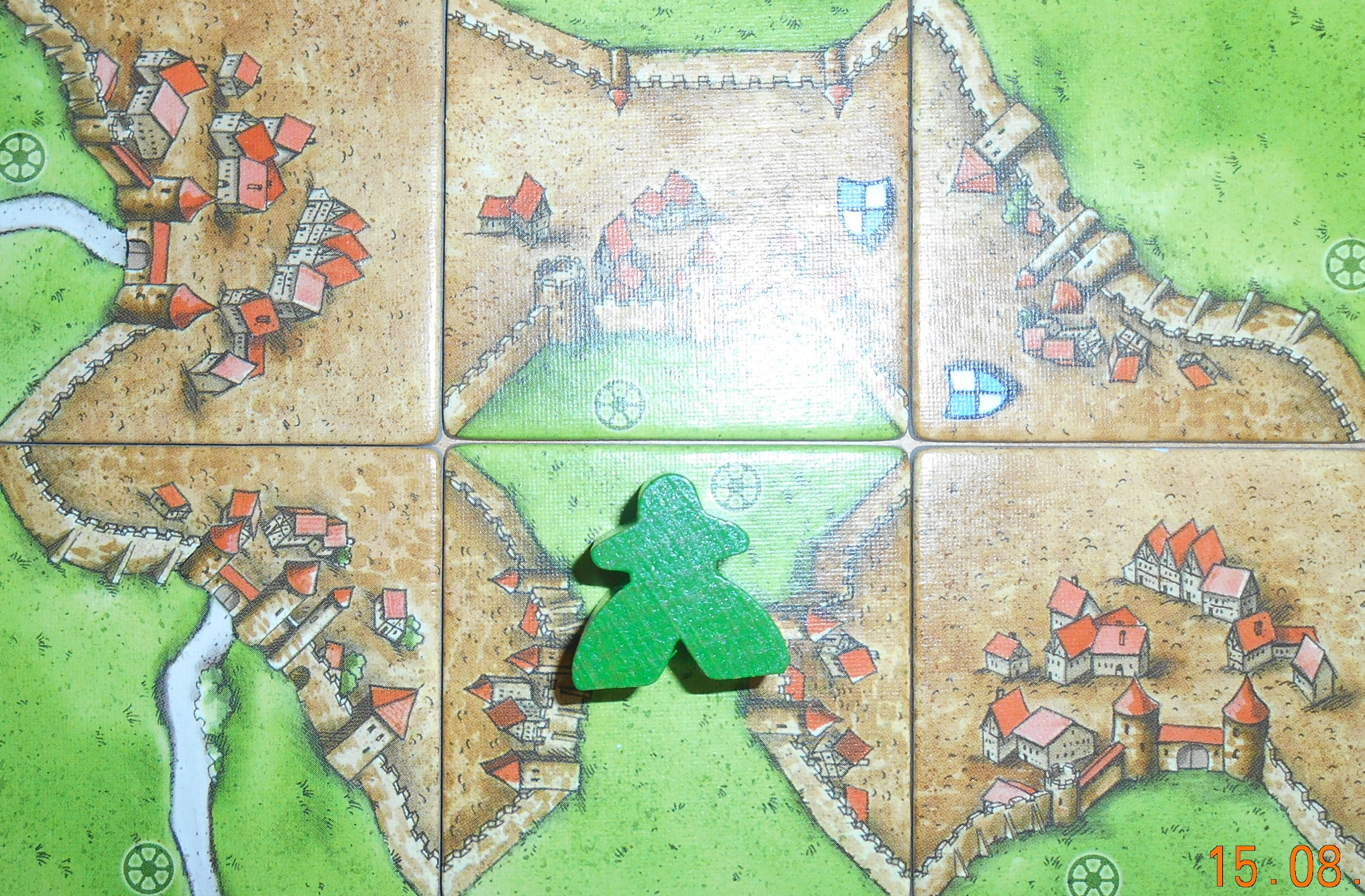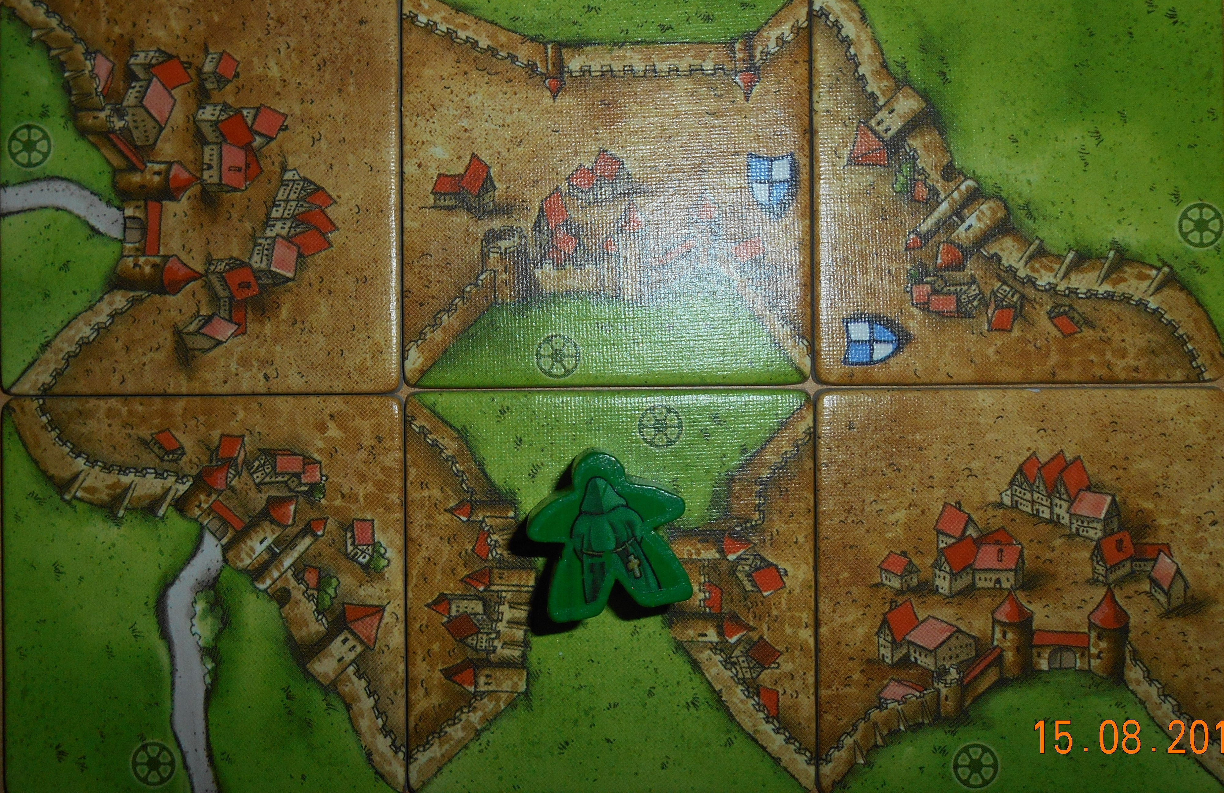 Falsche Burgen habe ich drei gefunden. Regel: "Wenn ein Spieler eine Kleinstadt – bestehend aus nur zwei halbrunden Stadtteilen – bildet, kann der Besitzer der Kleinstadt sich entscheiden, ob er sie fertigstellt ... oder, ob er sie zur Burg ausbaut. Baut der Besitzer die Burg, legt er eines seiner Burgplättchen auf die Stadt...." Hier befinden sich 3 Burgenplättchen in einer "Großstadt".