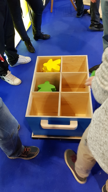 Ansonsten ist sie zweigeteilt, in der oberen Kiste befinden sich die Plättchen und in der unteren die Gefolgsleute/Meppel.