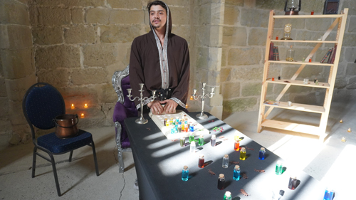An der 2. Station, einem orientalischen Souk, musste man gut riechen können. Es gab einige Fläschchen, die teilweise falsch beschriftet waren. Man musste an den Flaschen riechen und dann sagen, was dort drin war.