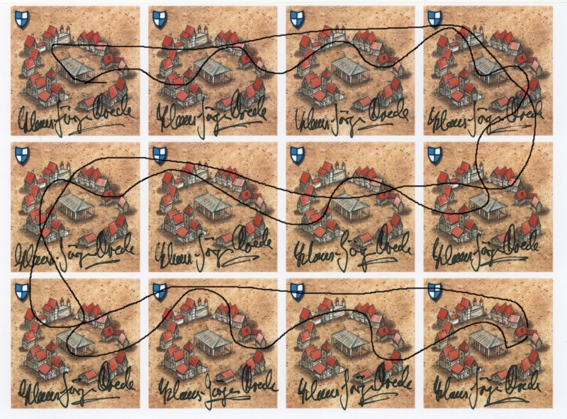 Inspiriert durch die beiden Postings von kettlefish über die "2. Auflage" habe ich auf dem Carcassonne-Treffen am 8.2.2015 auf der Festung Königstein Klaus-Jügen Wrede gefragt, ob er mir für das Forum eine 3. Auflage "La Porxada" signiert. Das hat er gern getan und so schaut der Halbbogen mit den 12 signierten Landschaftskarten aus (die etwas unmotivierte schwarze Wellenlinie stammt von mir und ist natürlich nur auf dem Scan zu sehen, dass keiner auf dumme Gedanken kommt ;) ):