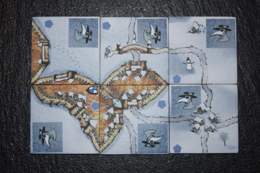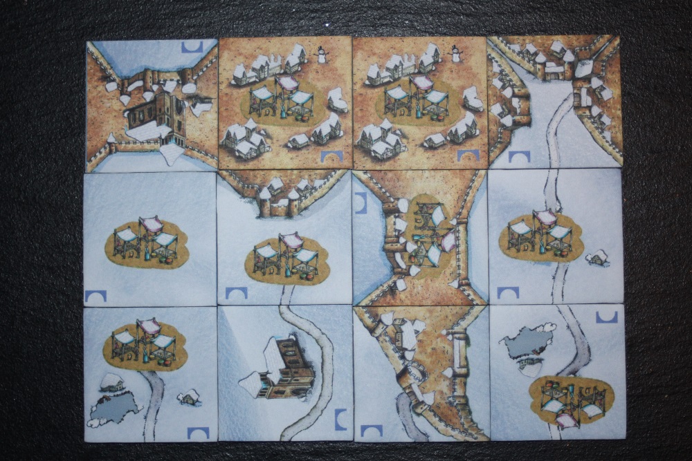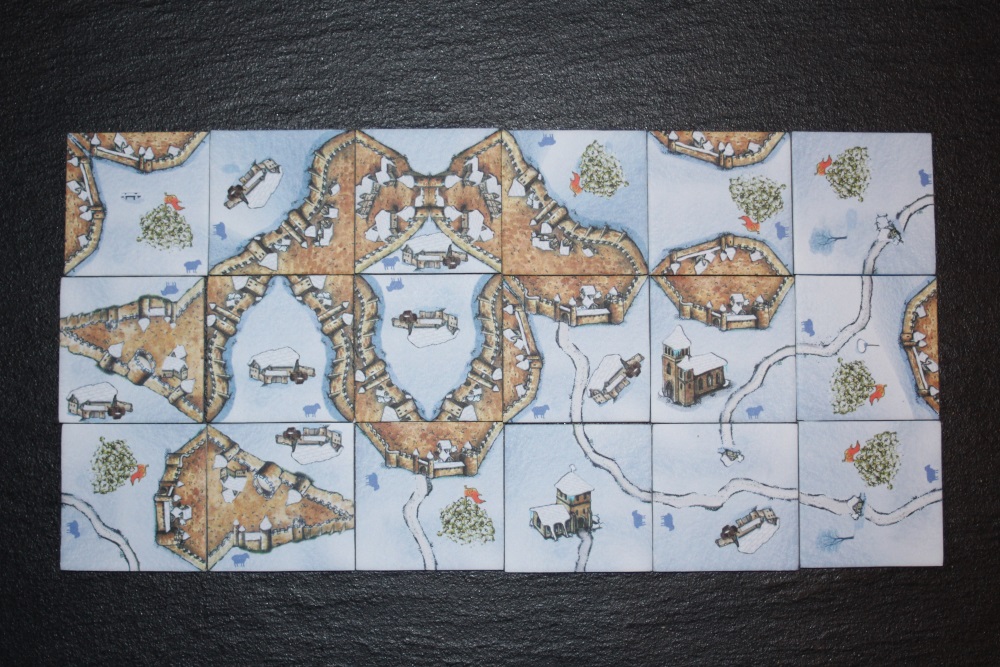 Bei dieser Erweiterung hat Zotto die geteilten Städte etwas anders gemacht: symmetrisch statt unsymmetrisch. Wenn man beide aneinanderlegt, entstehen zwei getrennte Städte, im Original ist es eine verbundene Stadt. Wer das lieber hat, greife zu meiner Version: ich habe allerdings die Stadt in 1/3 und 2/3 geteilt, weil ich vorhabe, mit dieser Teilung eine Erweiterung zu machen.