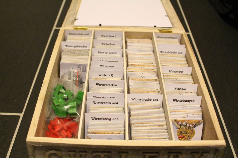 Auf das Schicksalsrad habe ich verzichtet, das dieses im Wesentlichen ja nur aus dem Grundspiel besteht. Hier ein Blick in auf meine Kiste.