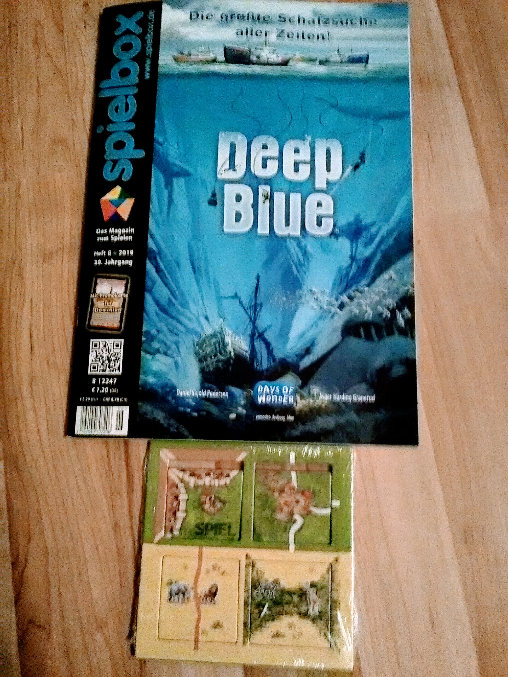 Die Neuausgaben aus Essen (leider ohne die Spiel19-Karte), der Artikel des Monats Oktober und als Geschenk vom Verlag ein Spielbox-Magazin.