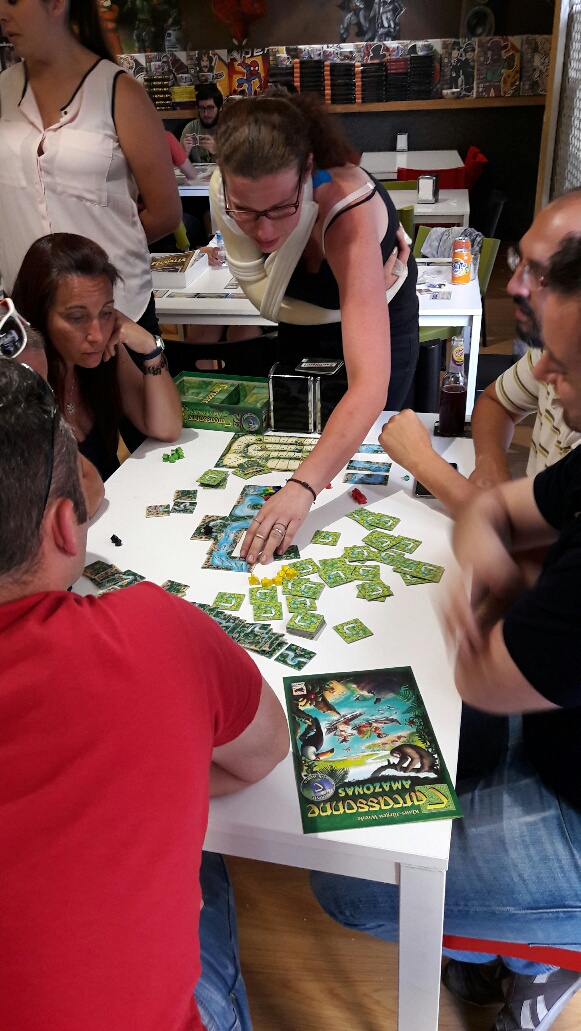 Es sind Bilder vom Carcassonne-Spielabend im Spielecafe "Play Planet" in Malaga.