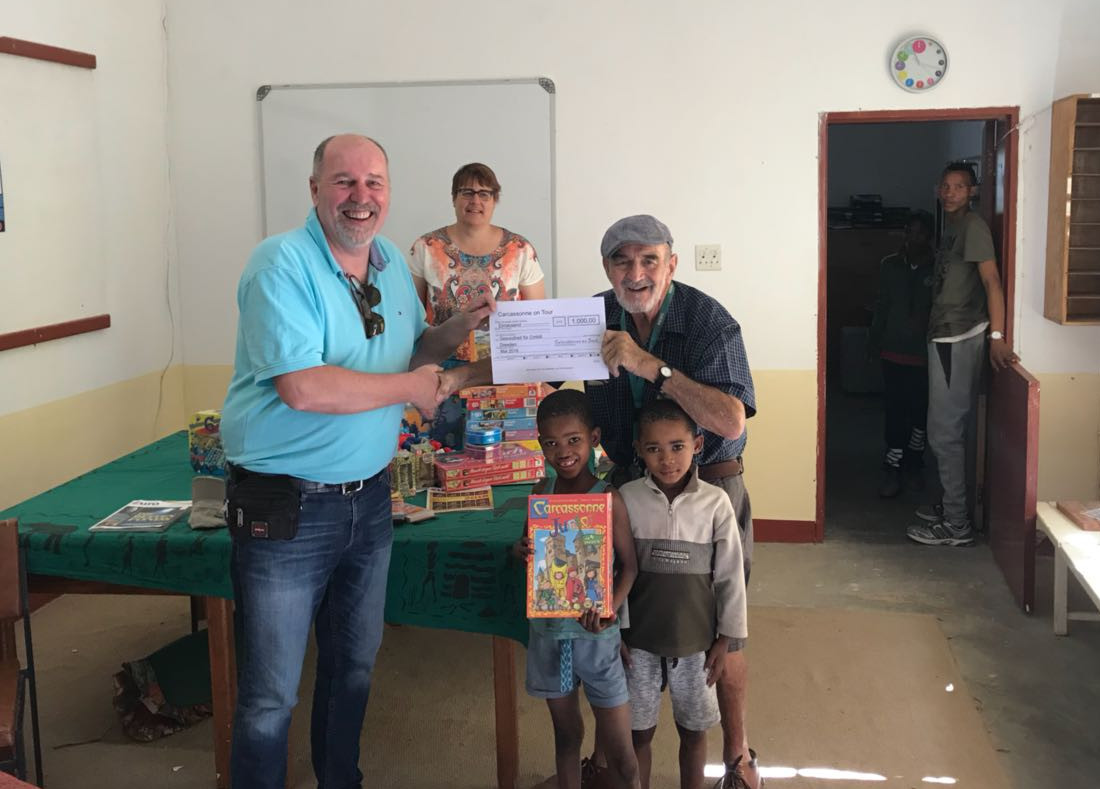Carcassonne on Tour bereist derzeit Namibia. Udo und seine CoT-Mannen besuchen dort die Ombili-Stiftung und übereichen im Auftrage des HiG-Verlages einen Spendenscheck und natürlich auch ein Spielepaket.