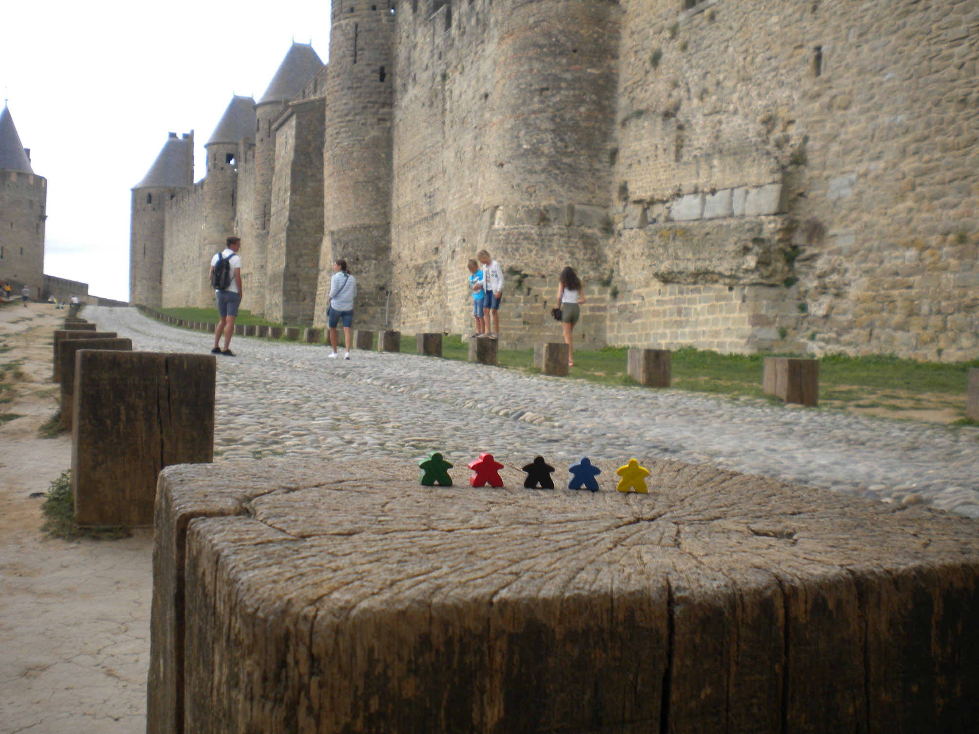 Nach dem Flohmarkt ging es dann endlich mal hinauf nach La Cité, die ca. 150 m Luftlinie von unserem Quartier lag. Die Meeple waren schon sehr beeindruckt und ganz ungeduldig, das innere der Stadt zu erkunden.