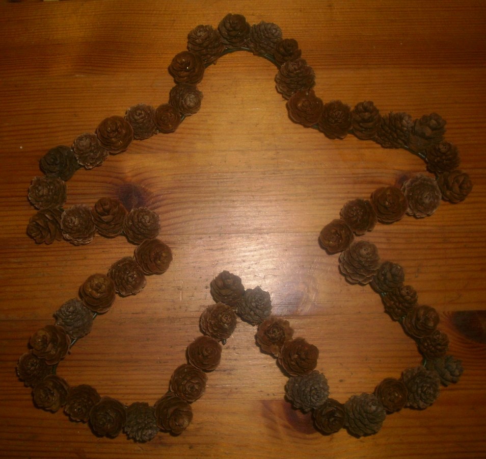 Mit einem weiteren dünnem Draht habe ich die Zapfenkette um den Meeple gewunden.